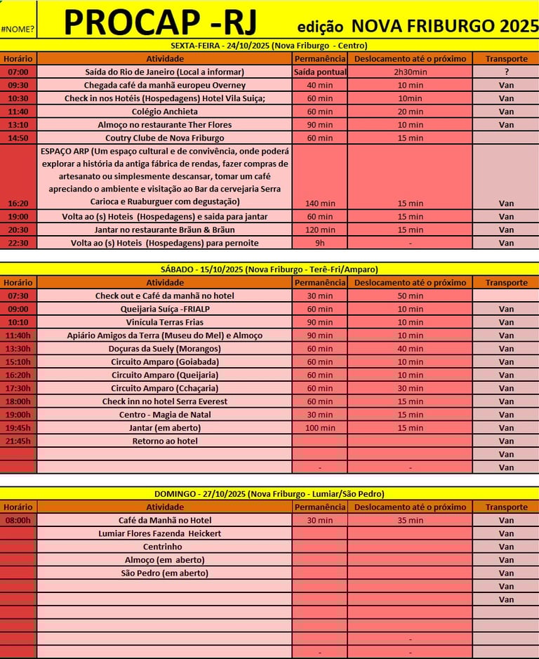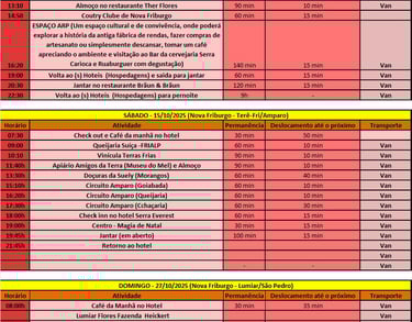 Durante os três dias de atividades, o grupo visitará os principais pontos turísticos e atrativos da cidade, incluindo o complexo ARP, o Country Clube, o Hotel Vila Suíça, além de empreendimentos gastronômicos que valorizam a culinária local. O roteiro inclui ainda vivências de turismo rural nos distritos de Amparo, Lumiar e São Pedro da Serra, reforçando o potencial de Nova Friburgo como destino plural e sustentável.